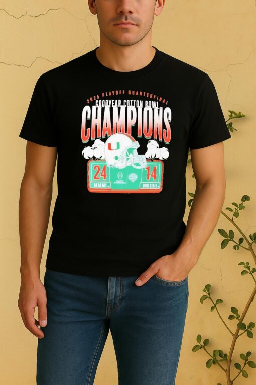 The Officials Miami Hurricanes Cfp 2025 Cotton Bowl Champions Score Shirt stands out thanks to its unique design, high-quality materials, and the perfect balance between style and functionality. It has quickly become a favorite choice among fashion enthusiasts.