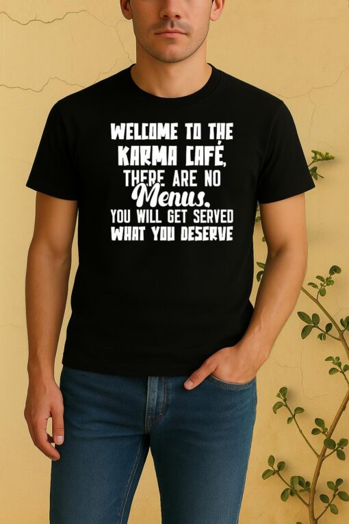 The Welcome To The Karma Cafe There Are No Menus You Will Get Served What You Deserve Shirt stands out thanks to its unique design, high-quality materials, and the perfect balance between style and functionality. It has quickly become a favorite choice among fashion enthusiasts.