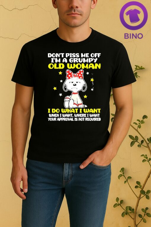 The Officials Snoopy Dont Piss Me Off Im A Grumpy Old Woman I Do What I Want When I Want Where I Want Your Approval Is Not Required Shirt stands out thanks to its unique design, high-quality materials, and the perfect balance between style and functionality. It has quickly become a favorite choice among fashion enthusiasts.